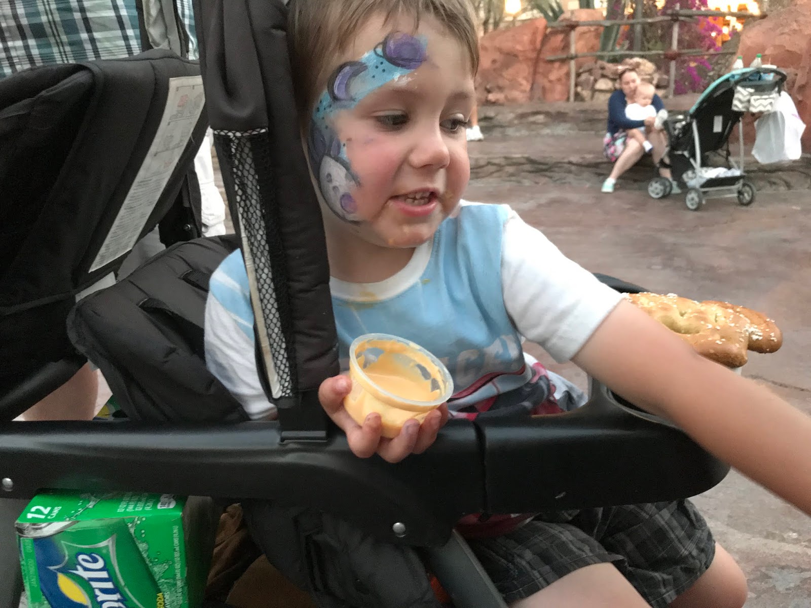 Lunch time was about needed so we stood in line for the Nemo Submarine and ate our uncrustable PB+Js. Andie, Jake and Brooklyn got so much attention from their awesome face painting jobs, so many compliments. When we finally got on the ride the kids were loving it, fish are awesome what can we say more. Brooklyn really enjoyed it but I know all the kids did.